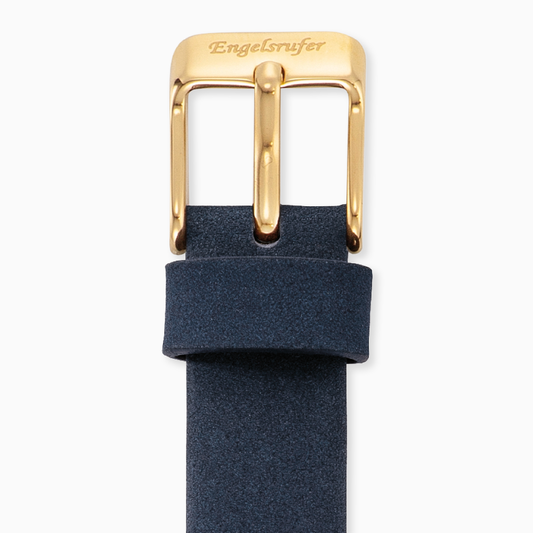 Lederarmband Dunkelblau für Uhren mit Edelstahl Verschluss Gold 12 mm