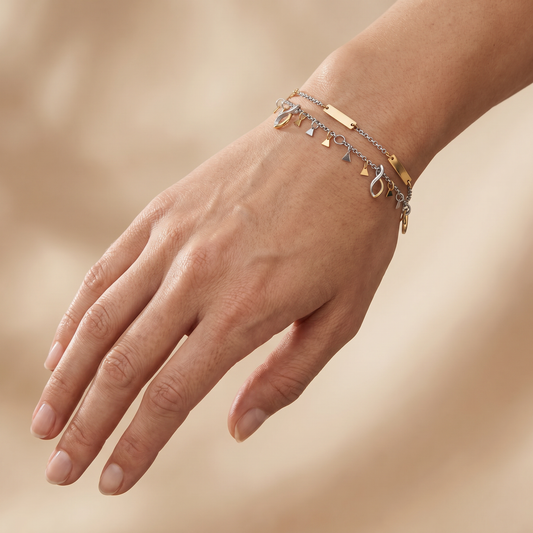 Duo 2 in 1: Armband Edelstahl BOHO Triangle Bicolor