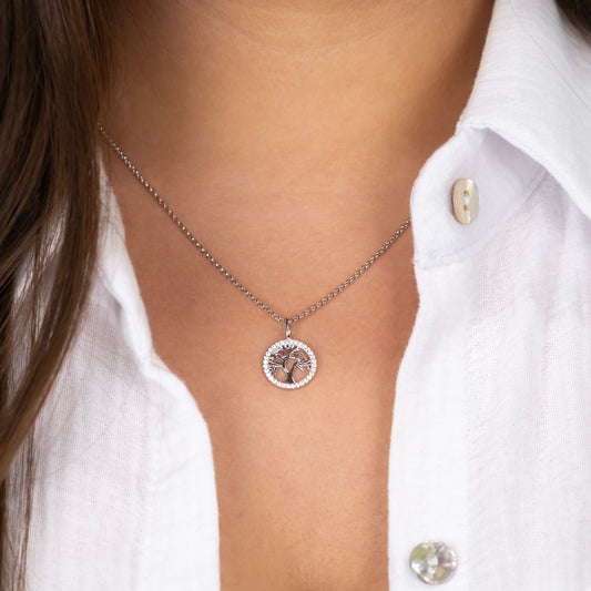 Halskette 925er Silber Lebensbaum mit Zirkonia