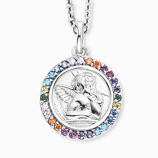 Kinder Halskette 925er Silber Glitzerengel mit Emaille
