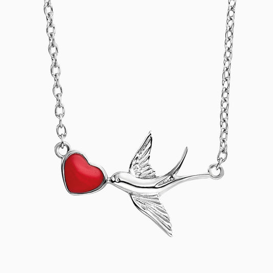 Kinder Halskette 925er Silber Herz und Schwalbe mit Emaille
