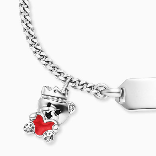 Kinder Armband 925er Silber Bärchen und Herz mit Gravurplatte