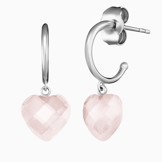 2er Schmuckset 925er Silber Armband Creolen Rosenquarz Herz
