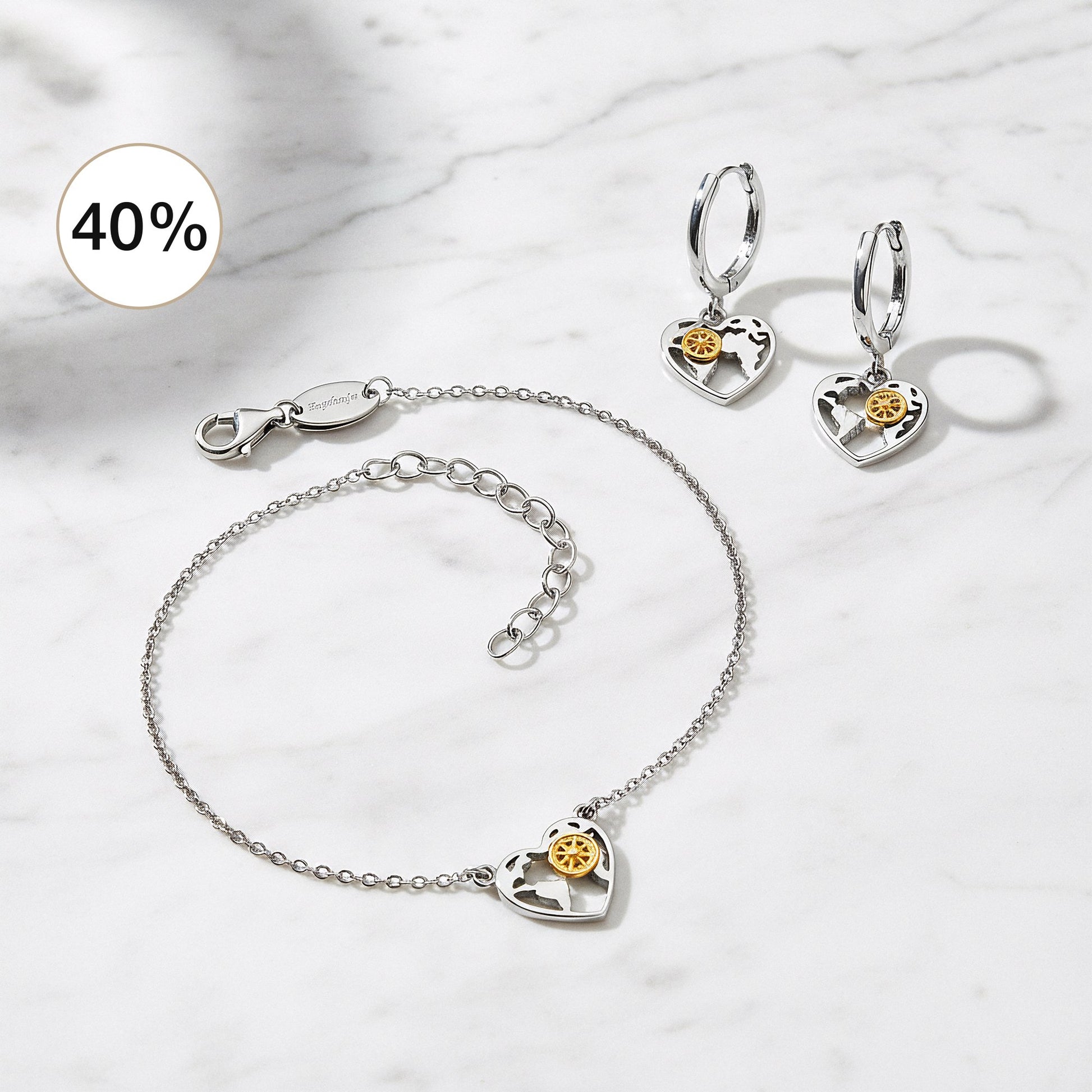 2er Schmuckset 925er Silber Armband Creolen Aloha Heart Bicolor