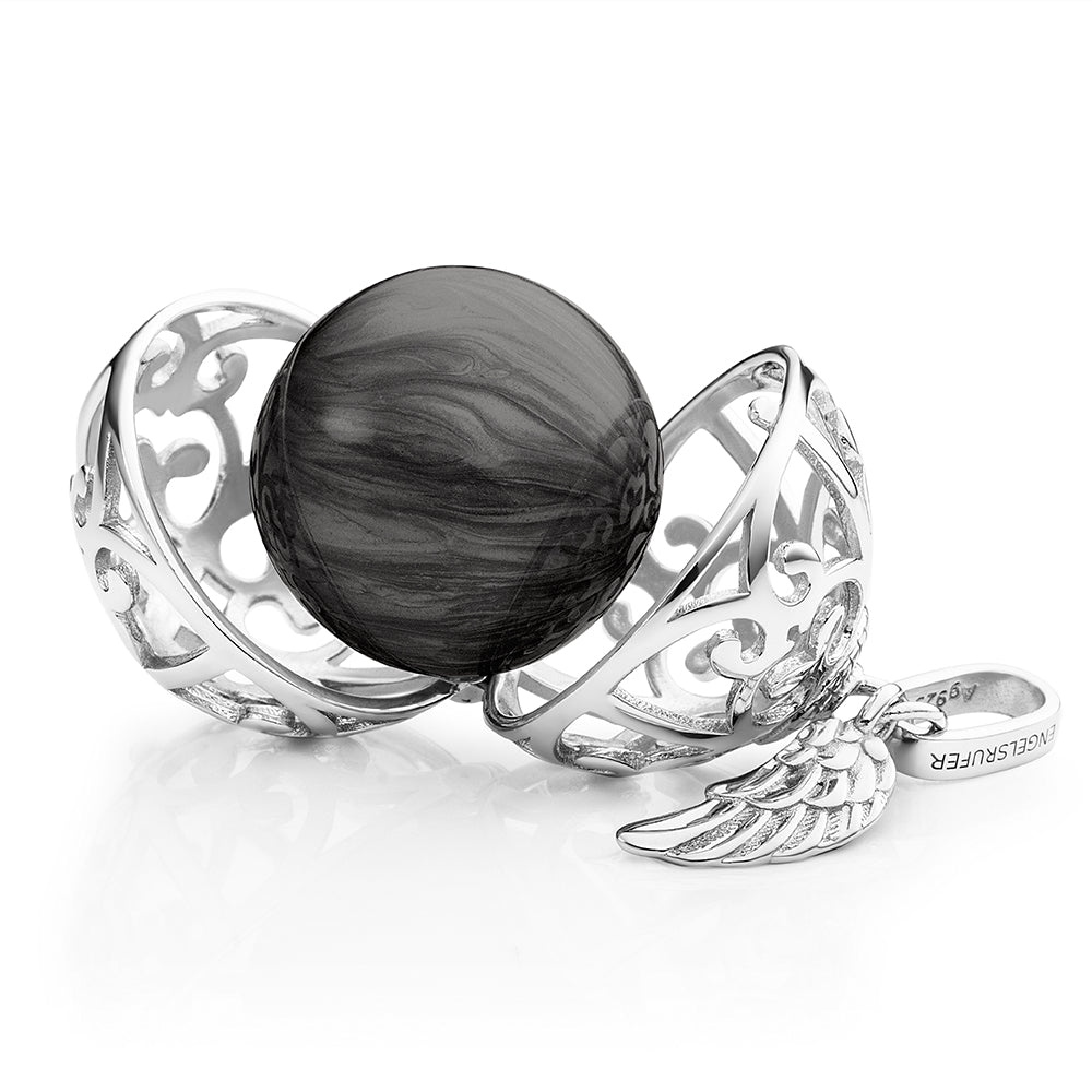 Anhänger 925er Silber Engelsrufer Flügel mit Klangkugel Perlmutt Grau