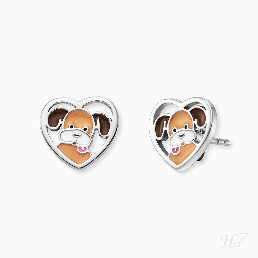 Kinder Ohrstecker 925er Silber Hund mit Emaille