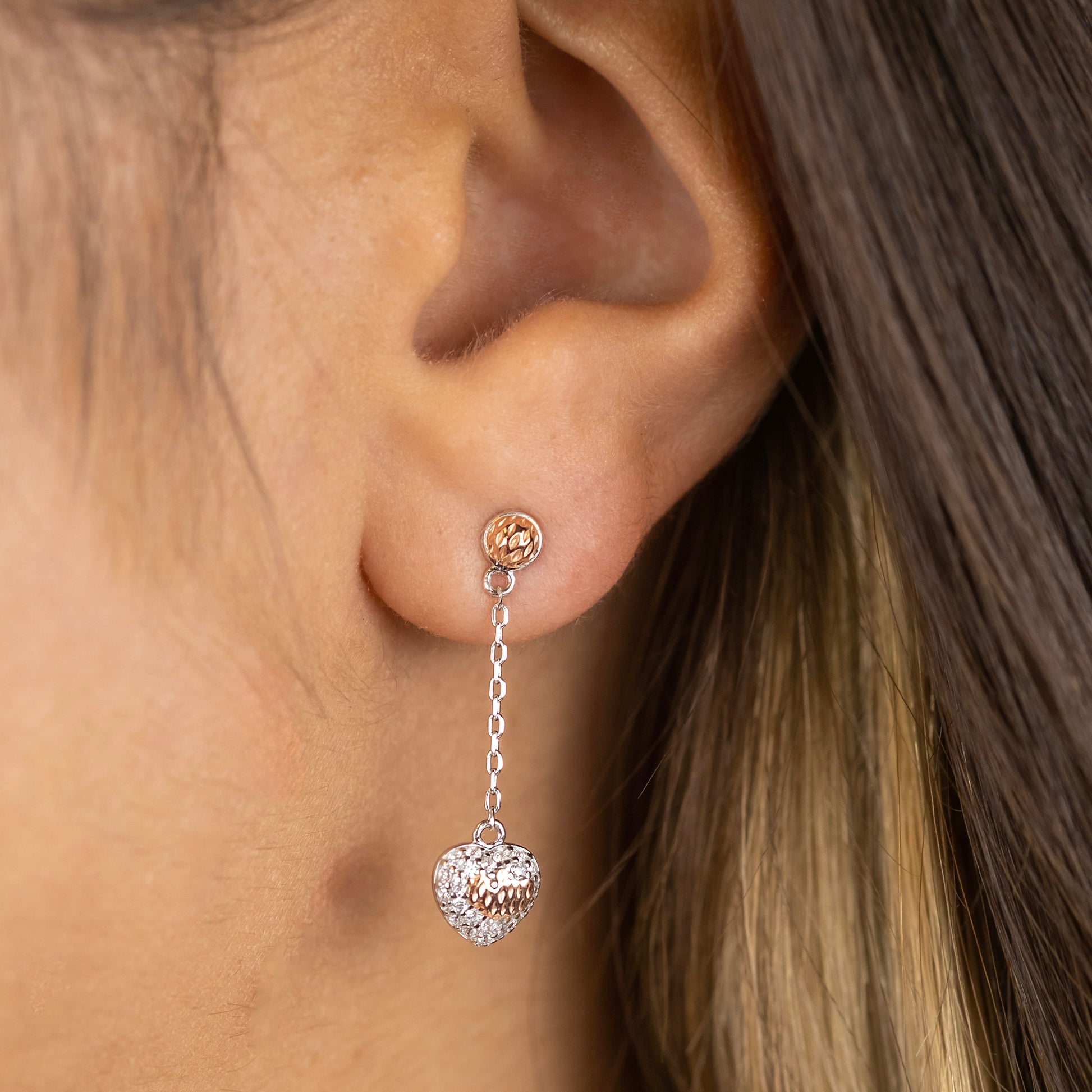Ohrhänger 925er Silber Herz Bicolor mit Zirkonia