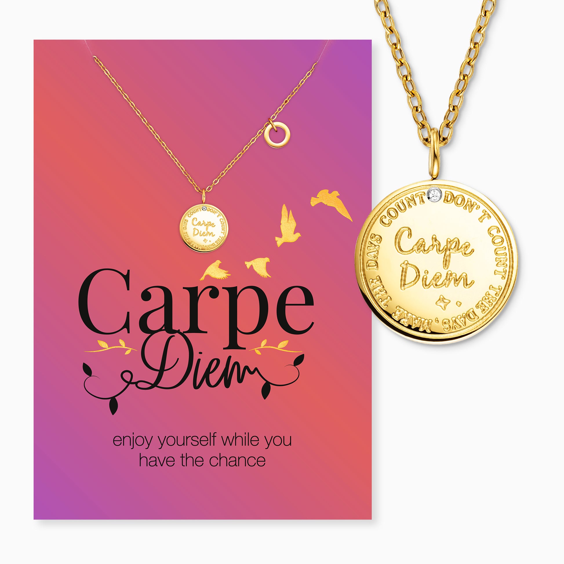 - Schmuckstück mit Grußkarte Carpe Diem