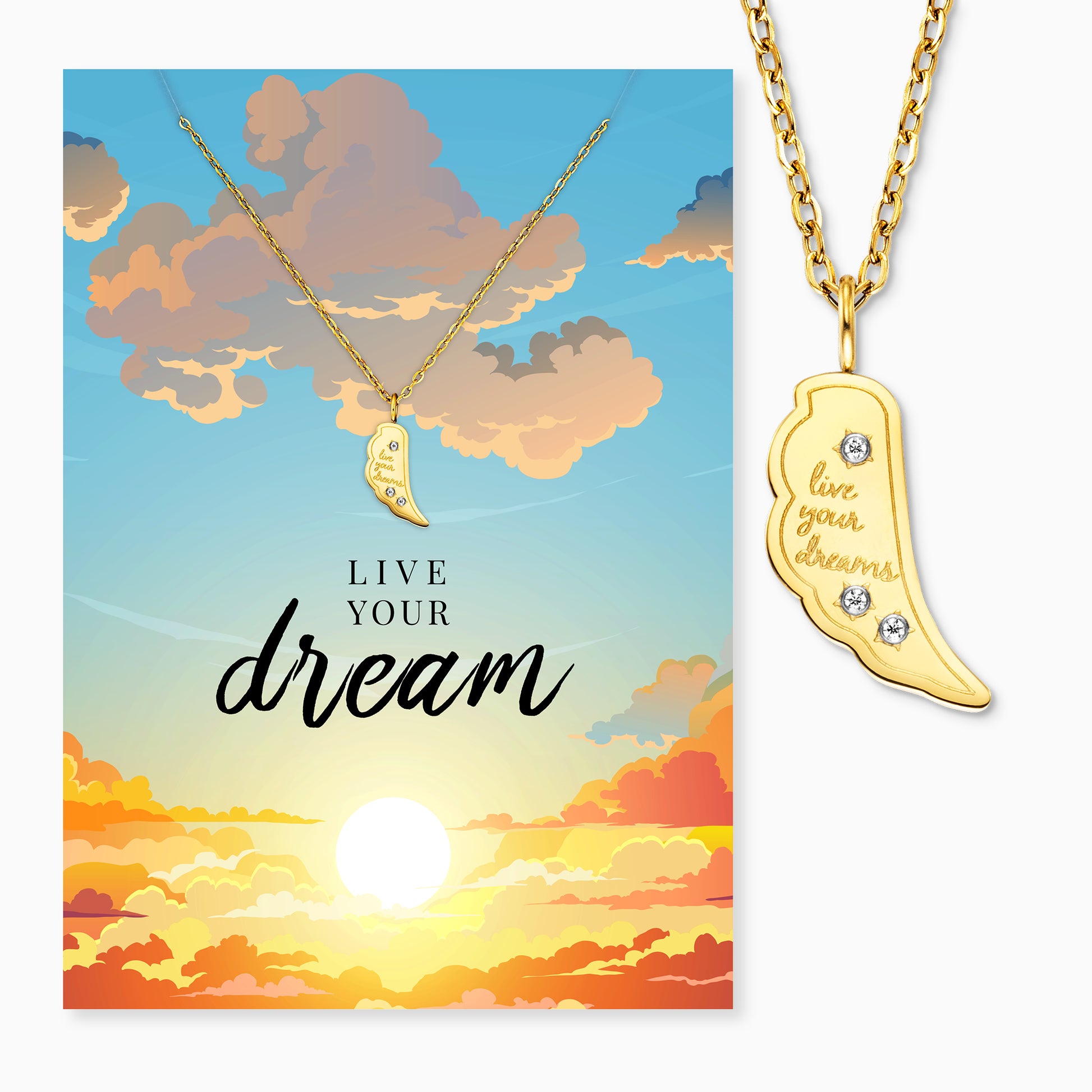 Grußkarte Live Your Dream mit Halskette Edelstahl Gold