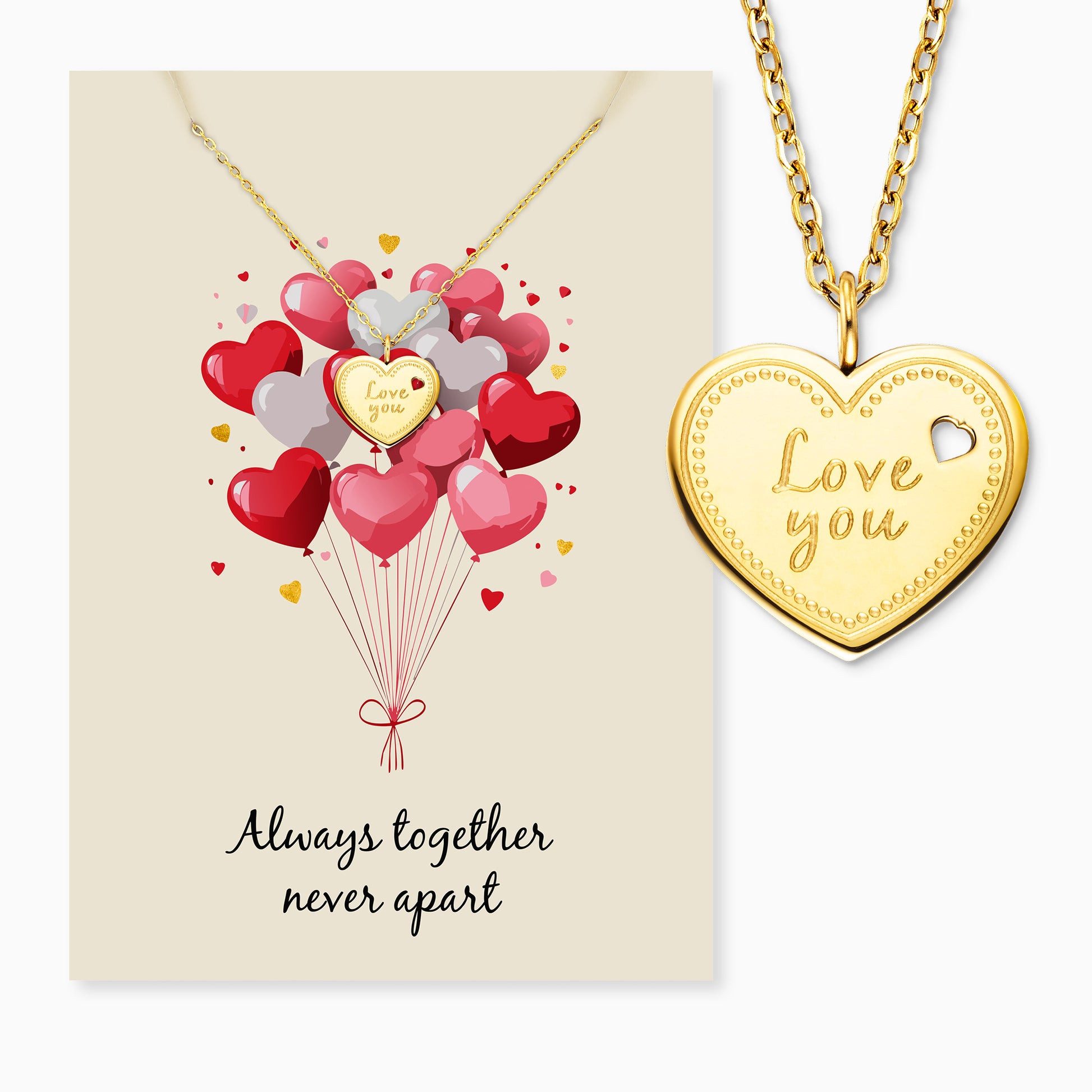 Grußkarte Love You mit Halskette Edelstahl Gold