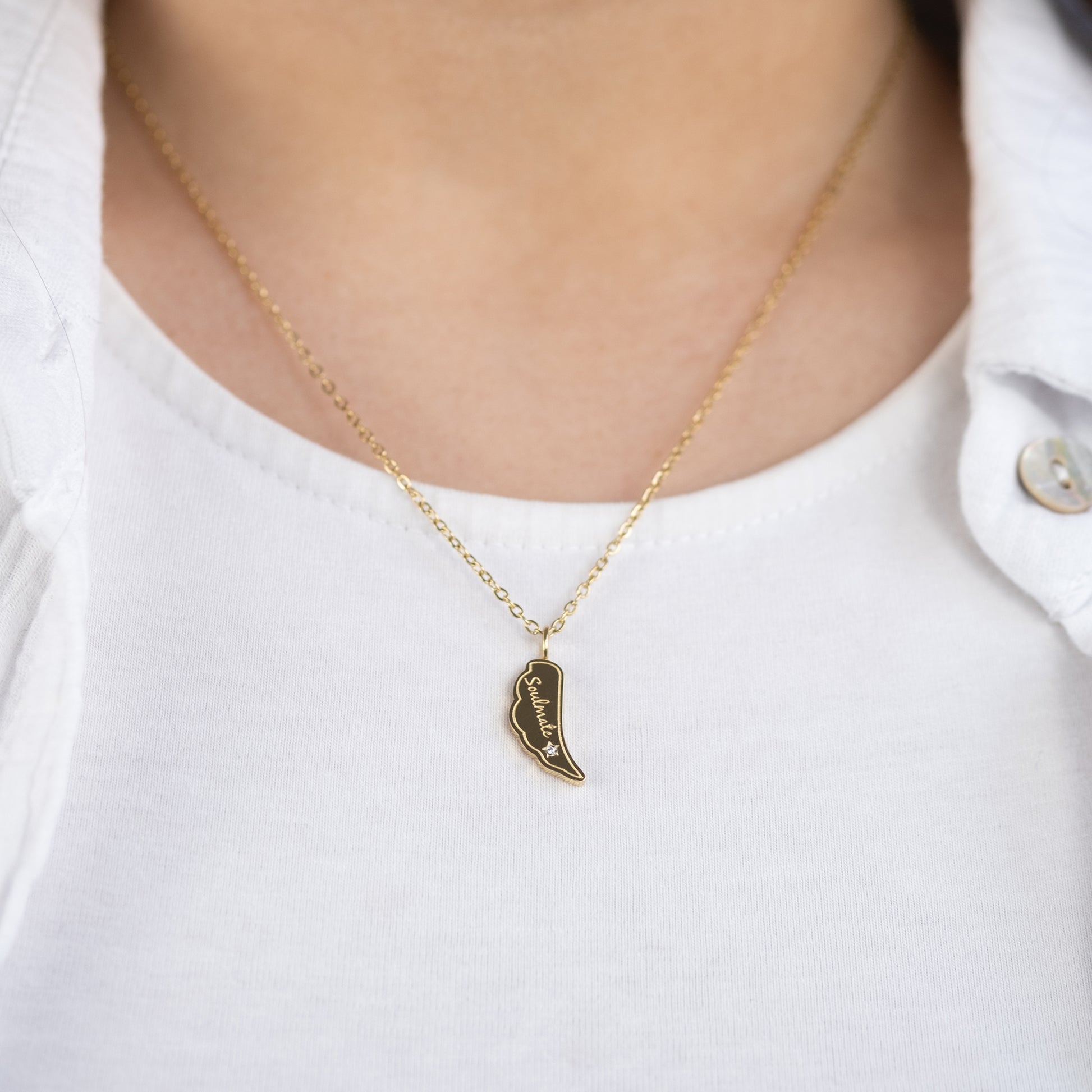 - Goldene Halskette mit graviertem Engelsflügel-Anhänger und Zirkonia Stein