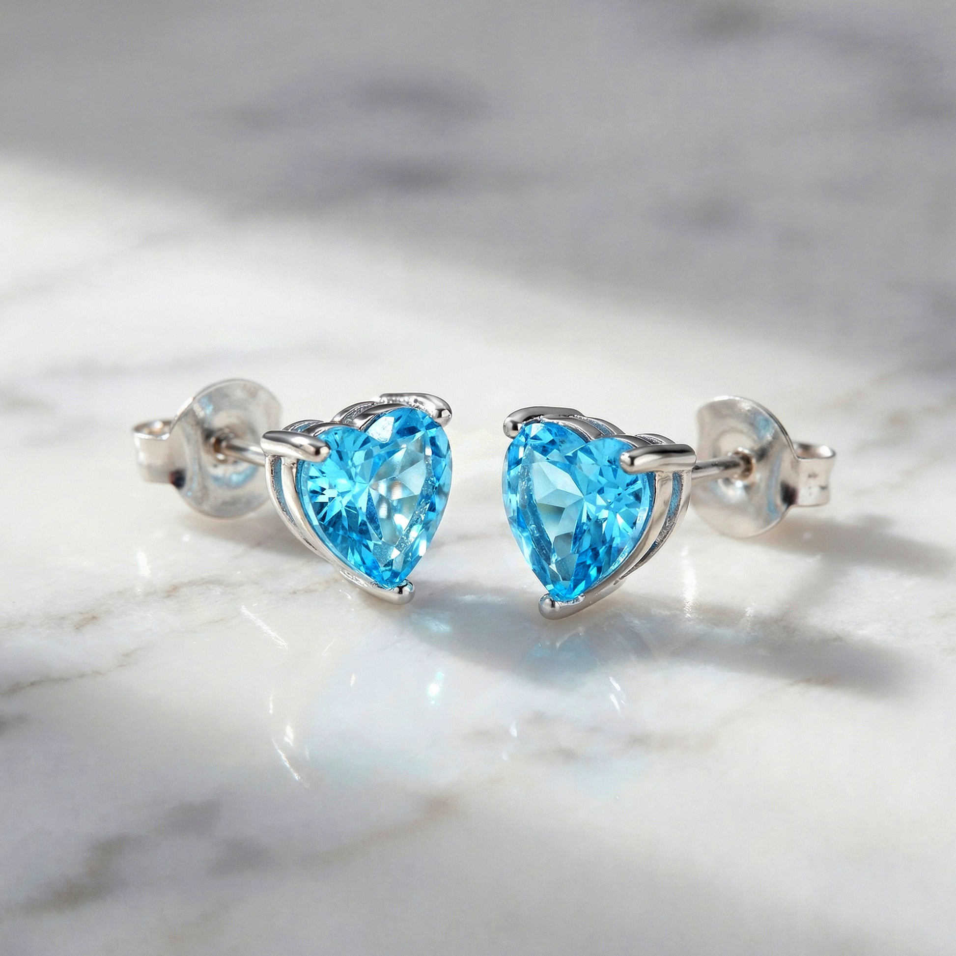 Ohrstecker 925er Silber Herz Shiny mit Zirkonia blau