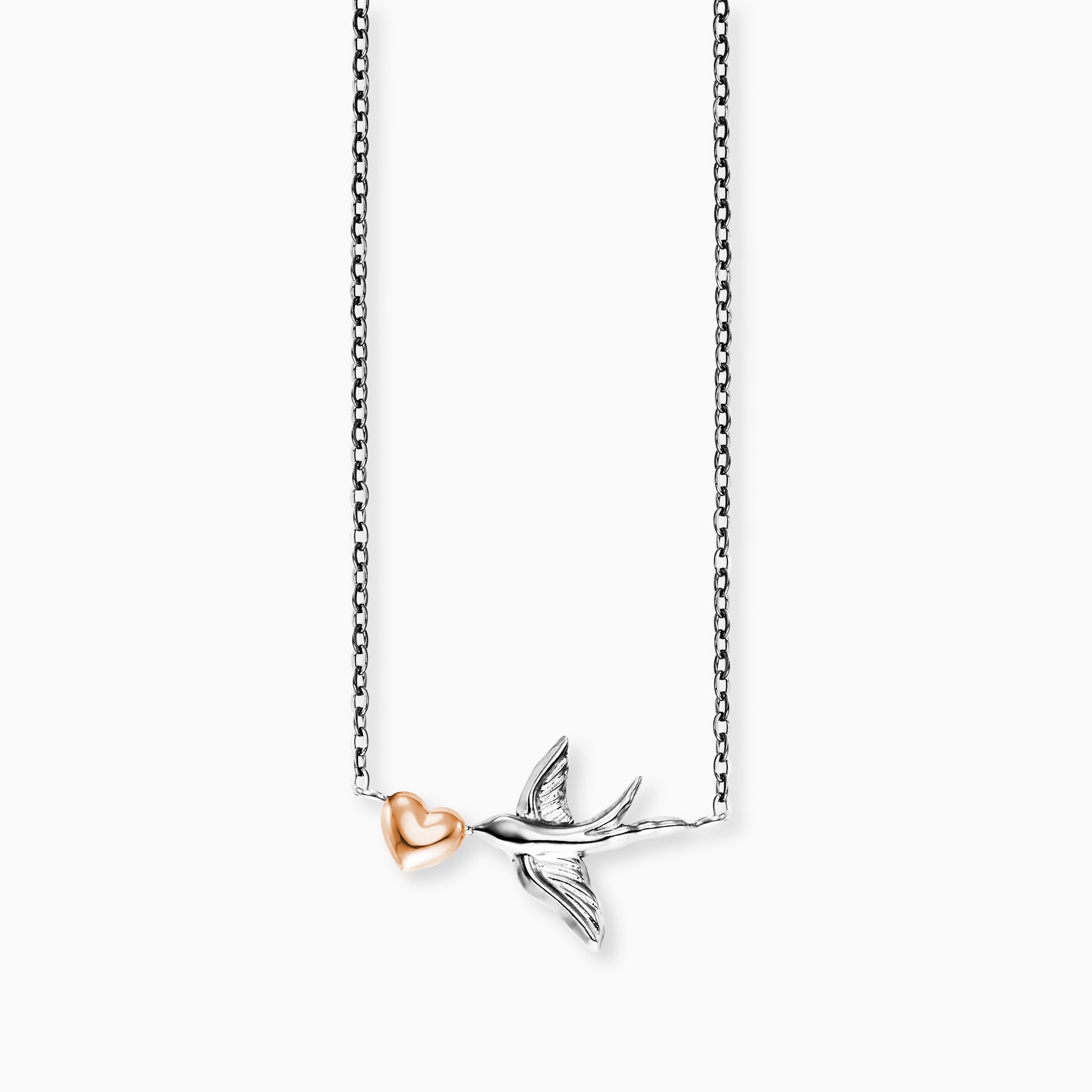 - Zweifarbige Halskette Silber/Roségold Herz und Schwalbe